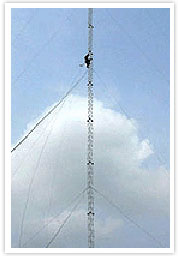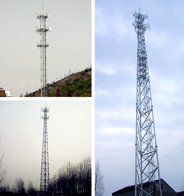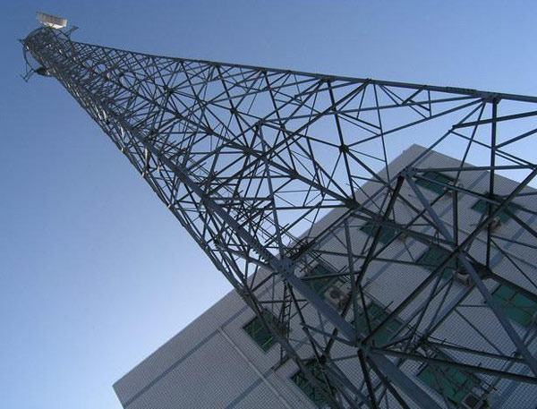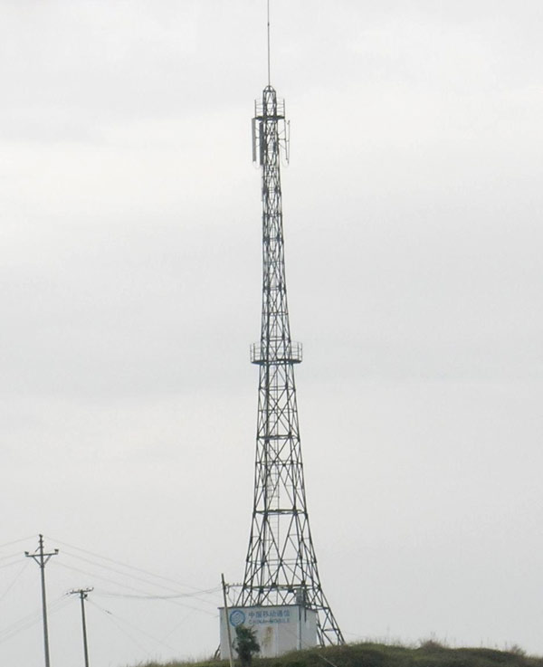 正三角形布置形式以及鋼絞線拉線固定方式,大大降低塔身自重 ;風(fēng)荷載系數(shù)小,基礎(chǔ)形式簡單,占地少(一般0.25m×0.25m),對承重物破壞較小,樓面基礎(chǔ)施工便利 ,可設(shè)計多層平臺,承載能力較高,可掛載多副天線和微波傳輸設(shè)備;在樓面上施工時,由于樓面周圍維護(hù)結(jié)構(gòu)多,拉線固定方便,施工速度大大加快;在山坡上施工時,可利用山坡優(yōu)勢進(jìn)行拉線固定,安裝便捷、施工速度快;構(gòu)件輕、占地少、對承載物的破壞小。